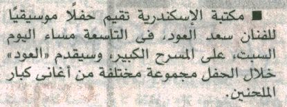 مكتبة الإسكندرية تقيم حفلا موسيقيا للفنان سعد العود