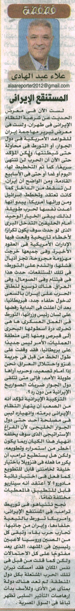 فضفضة. علاء عبد الهادي: المستنقع الإيراني