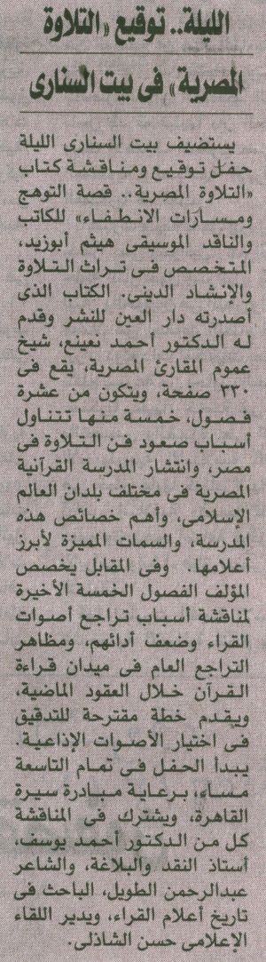 الليلة.. توقيع "التلاوة المصرية" في بيت السناري
