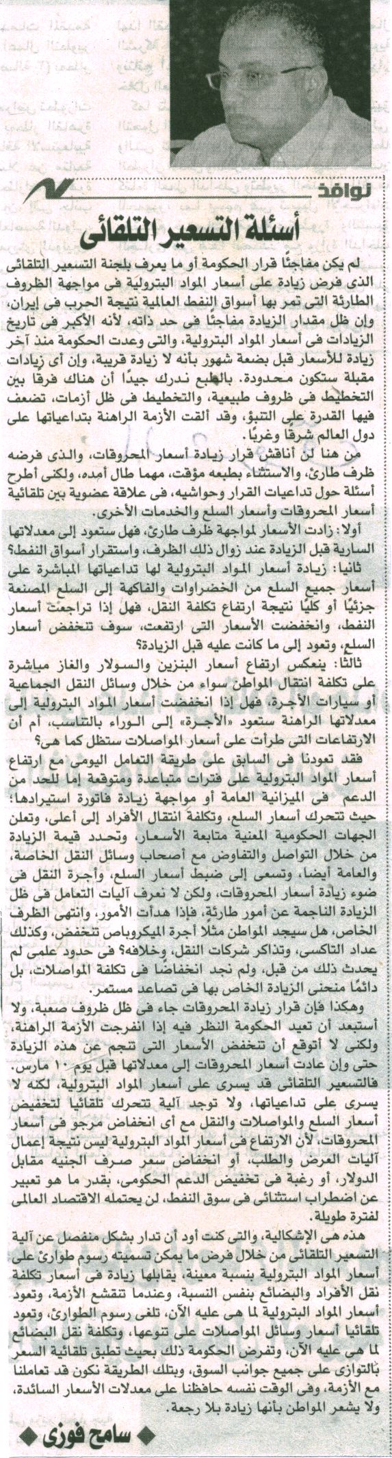 نوافذ. سامح فوزي: أسئلة التسعير التلقائي