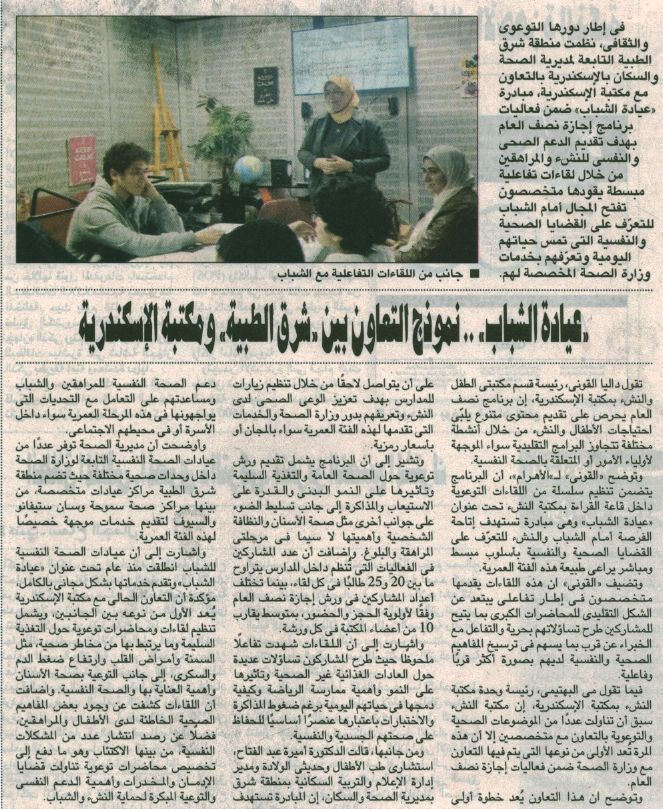 "عيادة الشباب".. نموذج التعاون بين "شرق الطبية" ومكتبة الإسكندرية