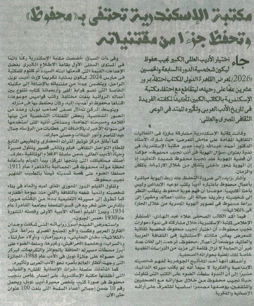 مكتبة الإسكندرية تحتفي بـ" محفوظ" وتحفظ جزءا من مقتنياته