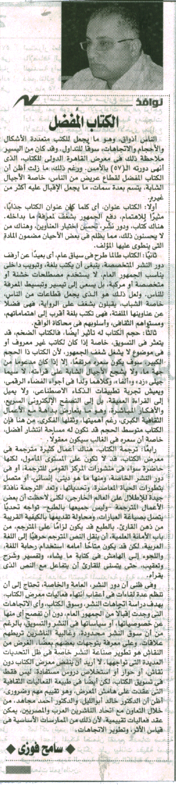 نوافذ. سامح فوزي: الكتاب المفضل