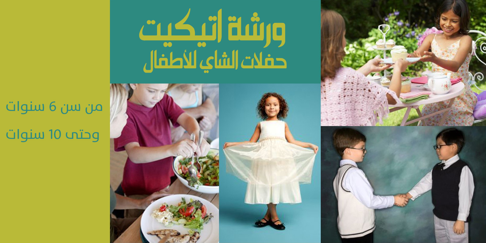 برنامج الورشة: تهدف الورشة إلى تعليم الأطفال فن الاتيكيت وكيفية استقبال الضيوف والتعامل مع الآخرين، وذلك من خلال: - تعليم اتيكيت اختيار الملابس والمظهر الحسن -اتيكيت الطعام والشراب والعزومات والمطاعم - اتيكيت الرد ع... 27/01/2019