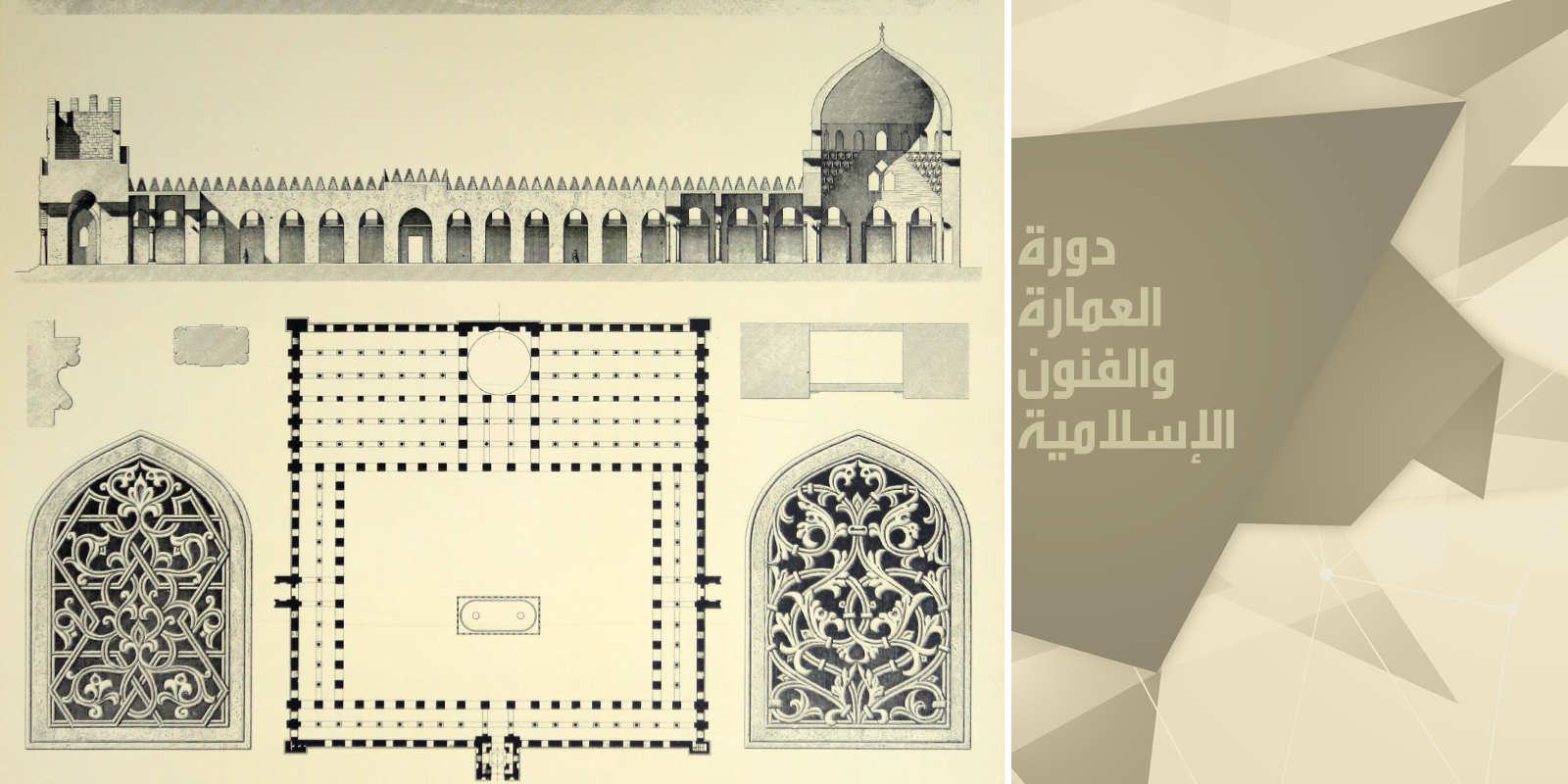 - الخصائص المعمارية والفنية للعمارة الإسلامية وفنون الخرط العربي والقمريات والمقرنصات والأطباق النجمية والكرانيش والشرافات والحمامات والأسبلة والمنازل والوكالات