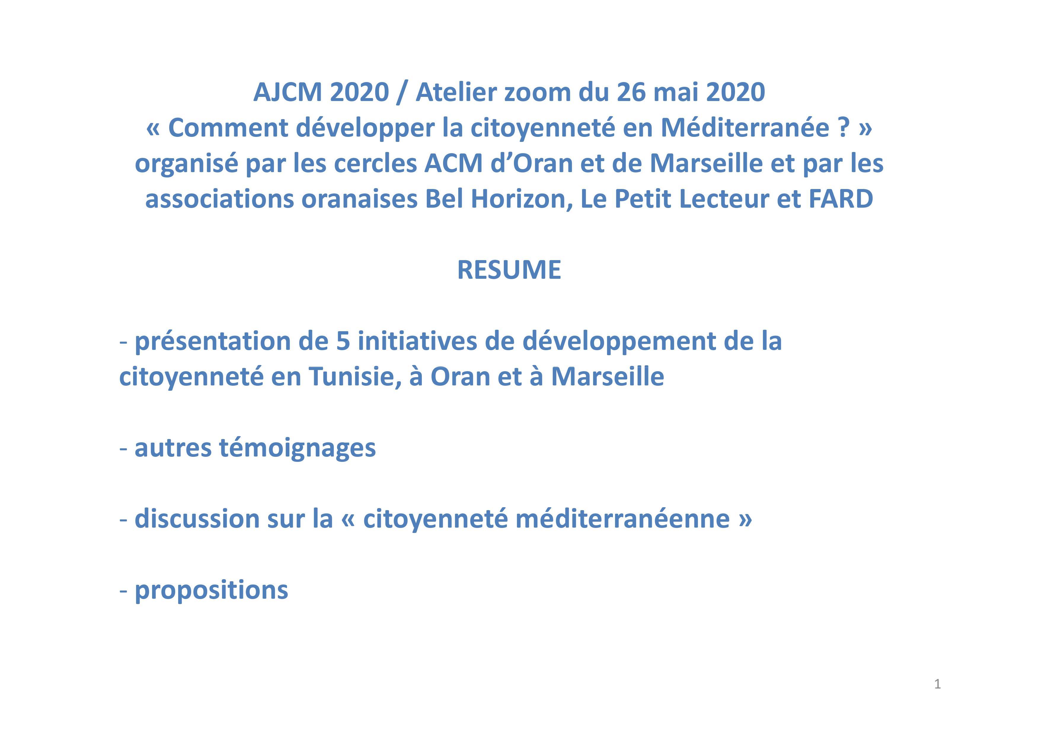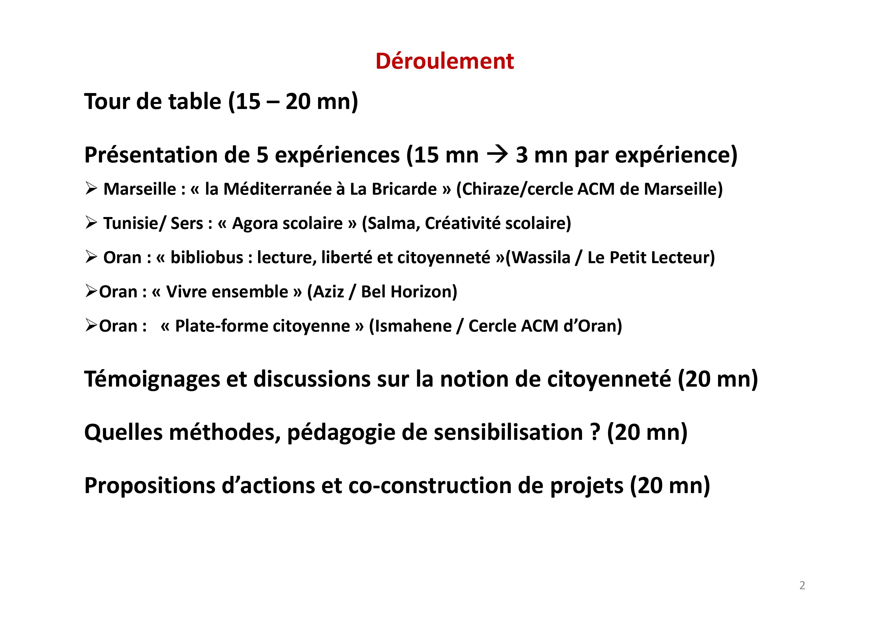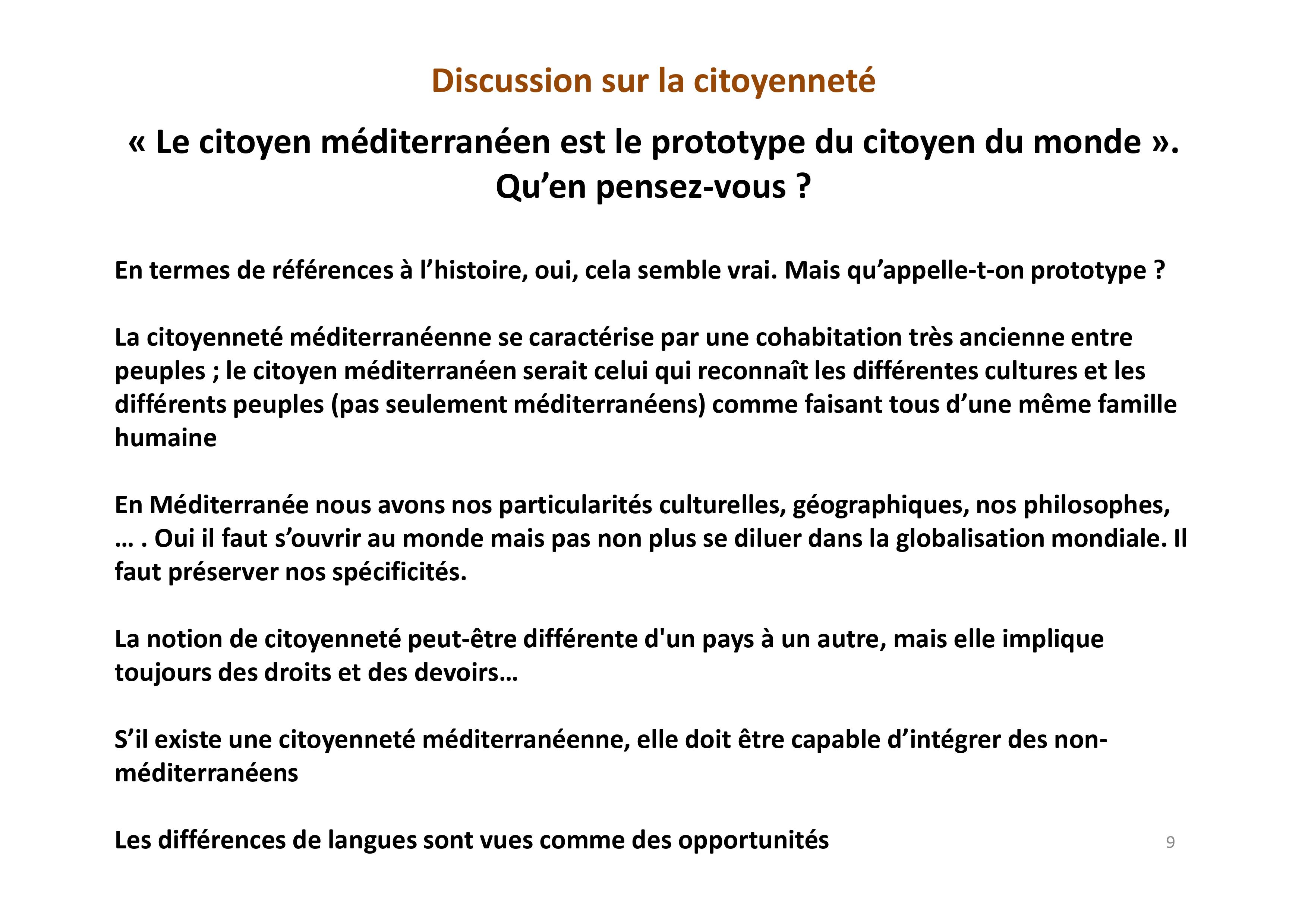 Atelier « Comment développer la citoyenneté en Méditerranée »