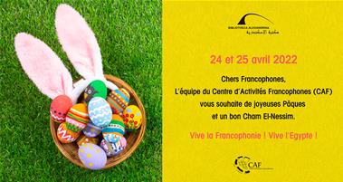 L’équipe du Centre d’Activités Francophones (CAF) vous souhaite de joyeuses Pâques et un bon Cham El-Nessim.