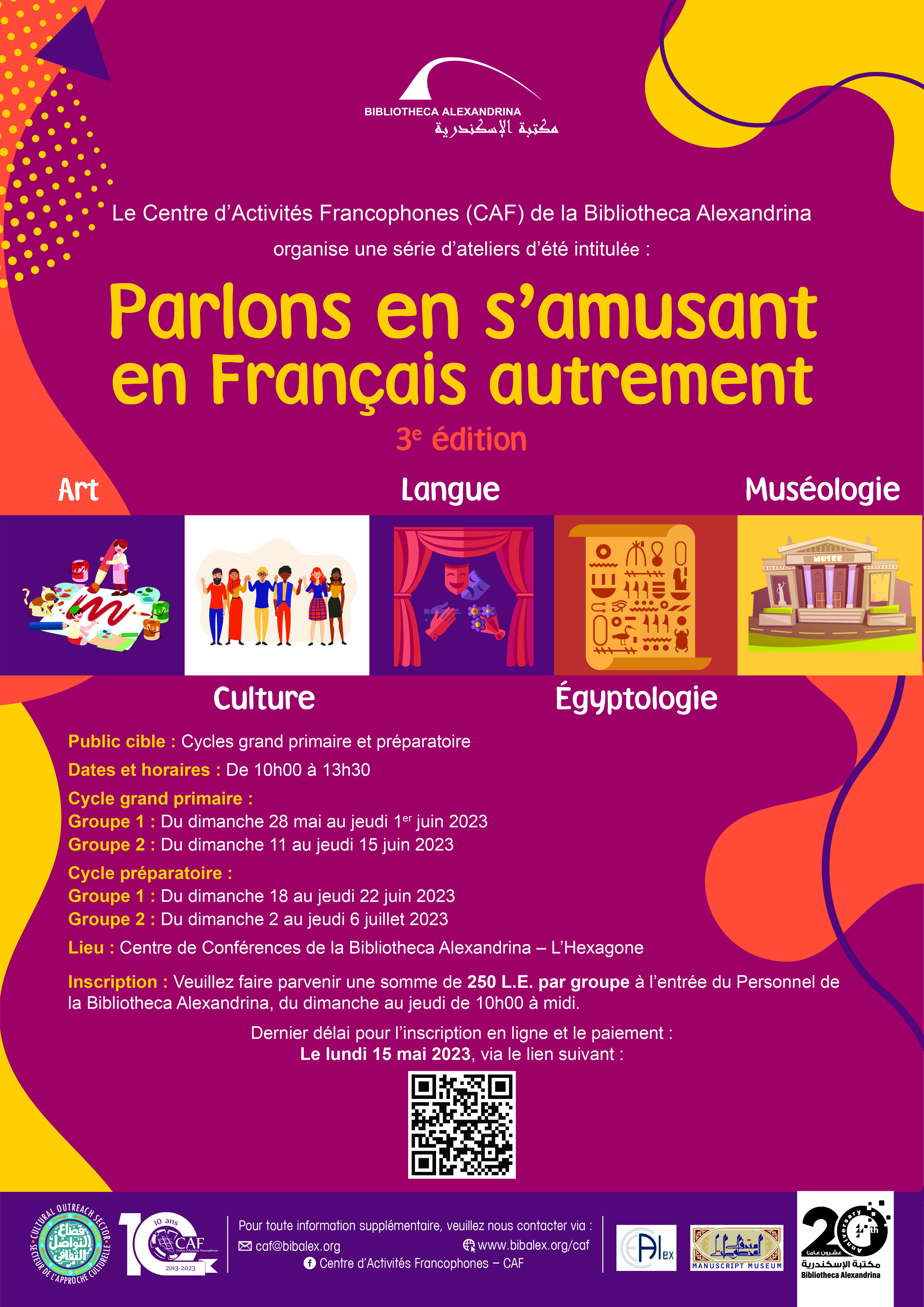 Le Centre d’Activités Francophones (CAF) de la Bibliotheca Alexandrina organise une série d’ateliers d’été intitulée :