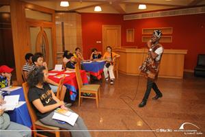 Les participants avec Marina Saleh, l'animatrice de l'atelir de jeux