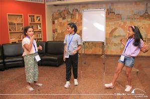 Les participants du 3e groupe avec Marina Saleh, l'animatrice de l'atelir de jeux