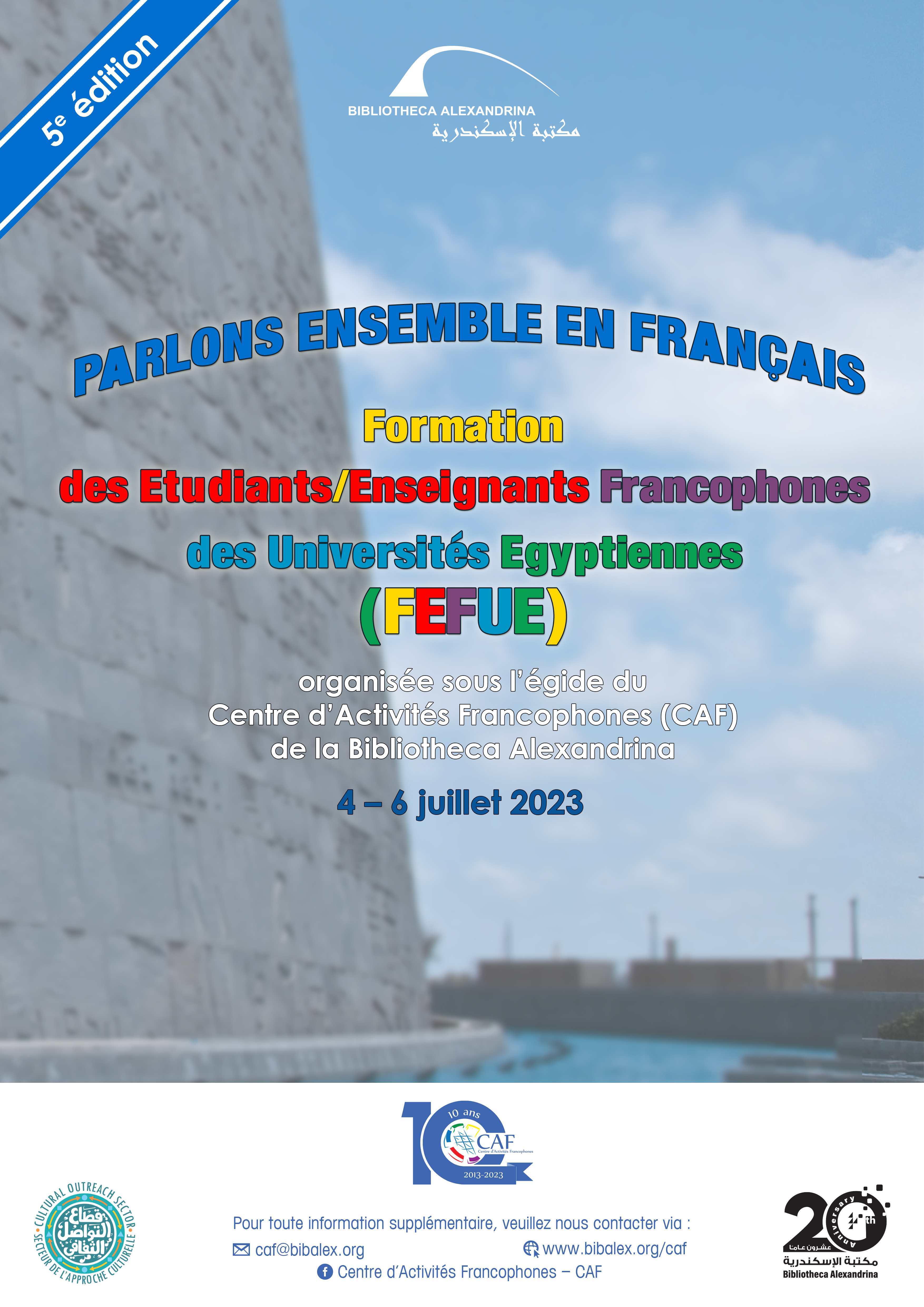 Formation des enseignants francophones des écoles égyptiennes (FEFEE) organisée sous l’égide du Centre d’Activités Francophones (CAF) affilié à la Bibliotheca Alexandrina.