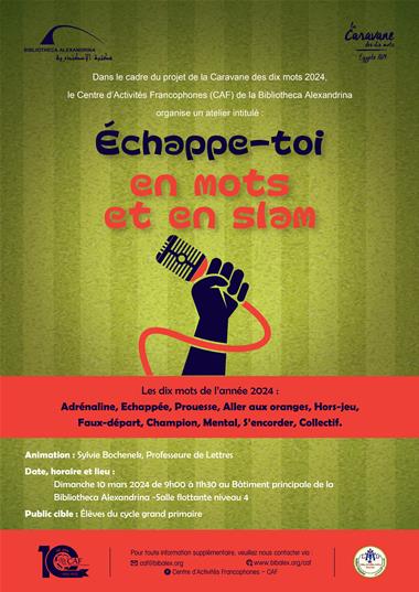 organise un atelier intitulé :Echappe-toi en mots et en slam