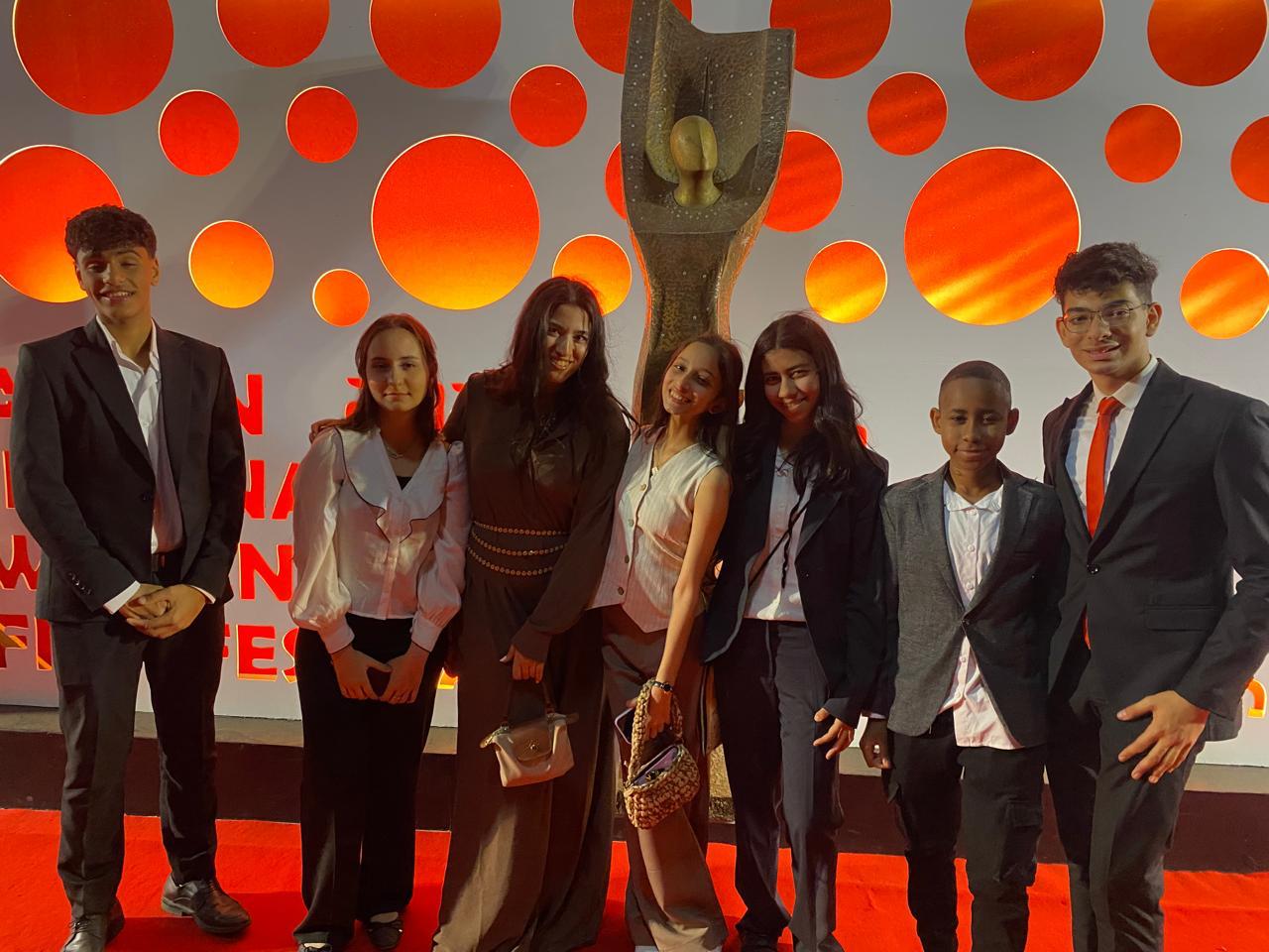 Les lauréats de l'atelier avec l'actrice Lebleba
