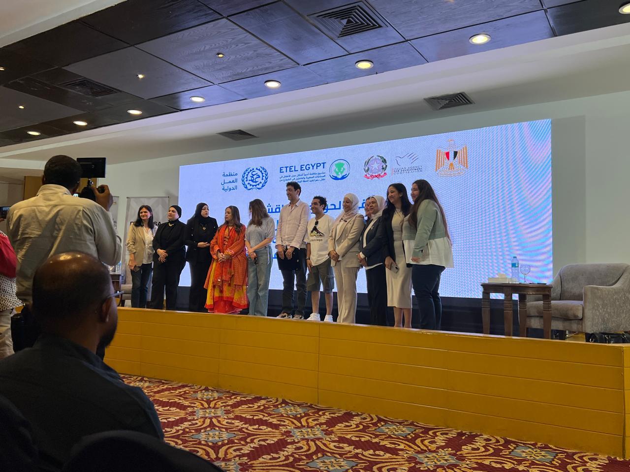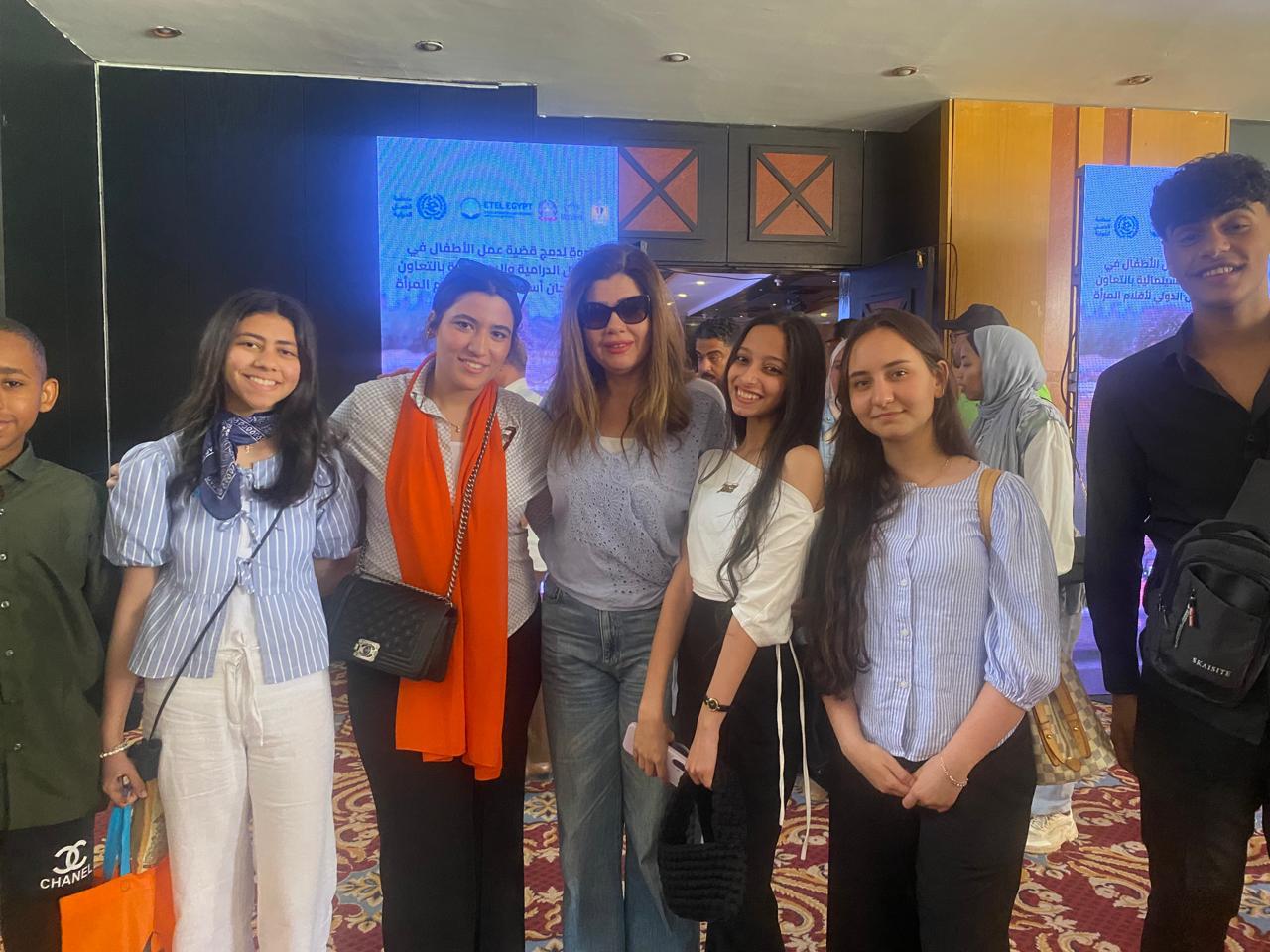 Les lauréates de l'atelier avec l'actrice Mme Rania Farid Shawky