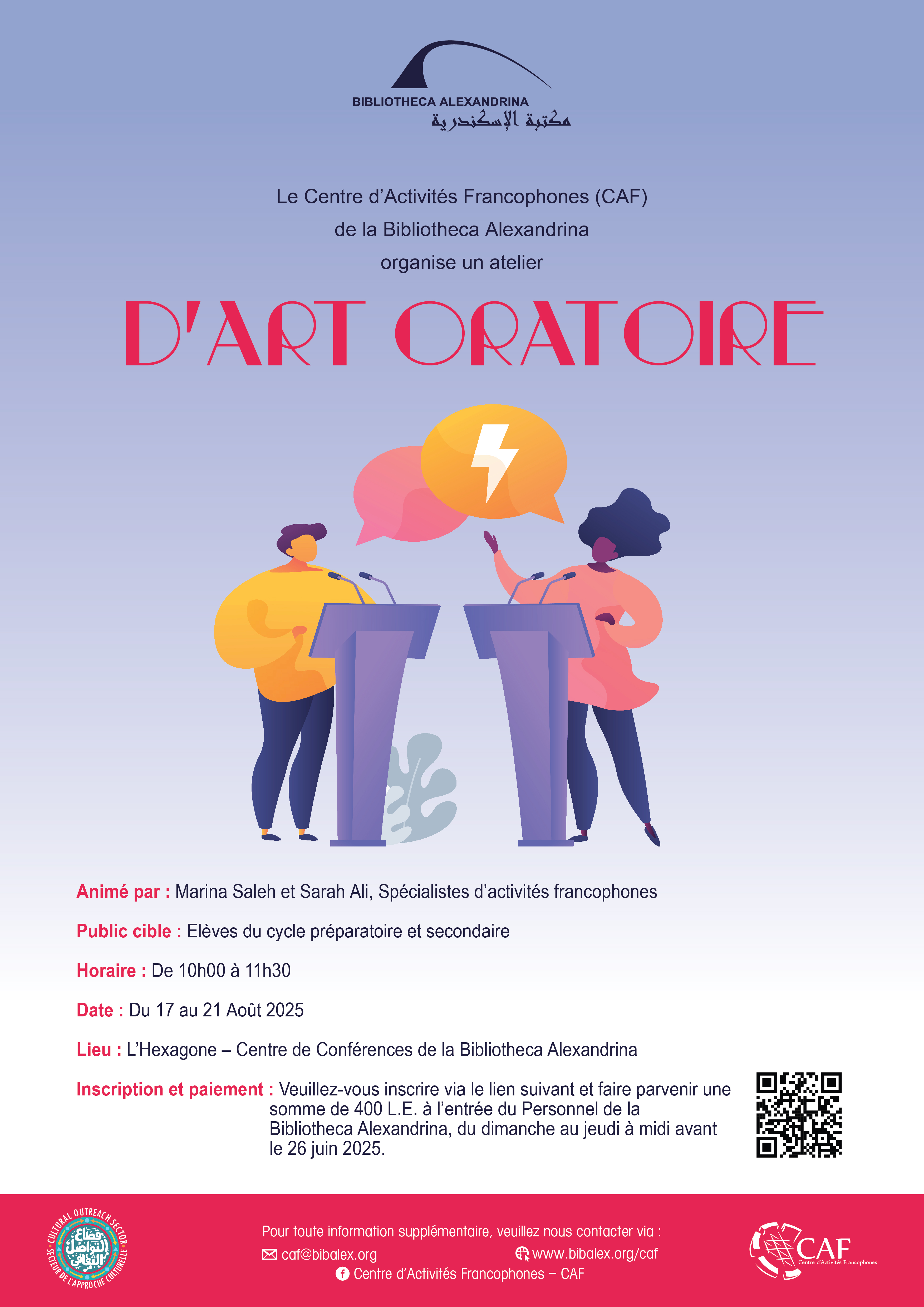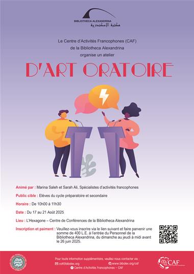 Le Centre d’Activités Francophones (CAF) de la Bibliotheca Alexandrina organise un atelier d'art oratoire