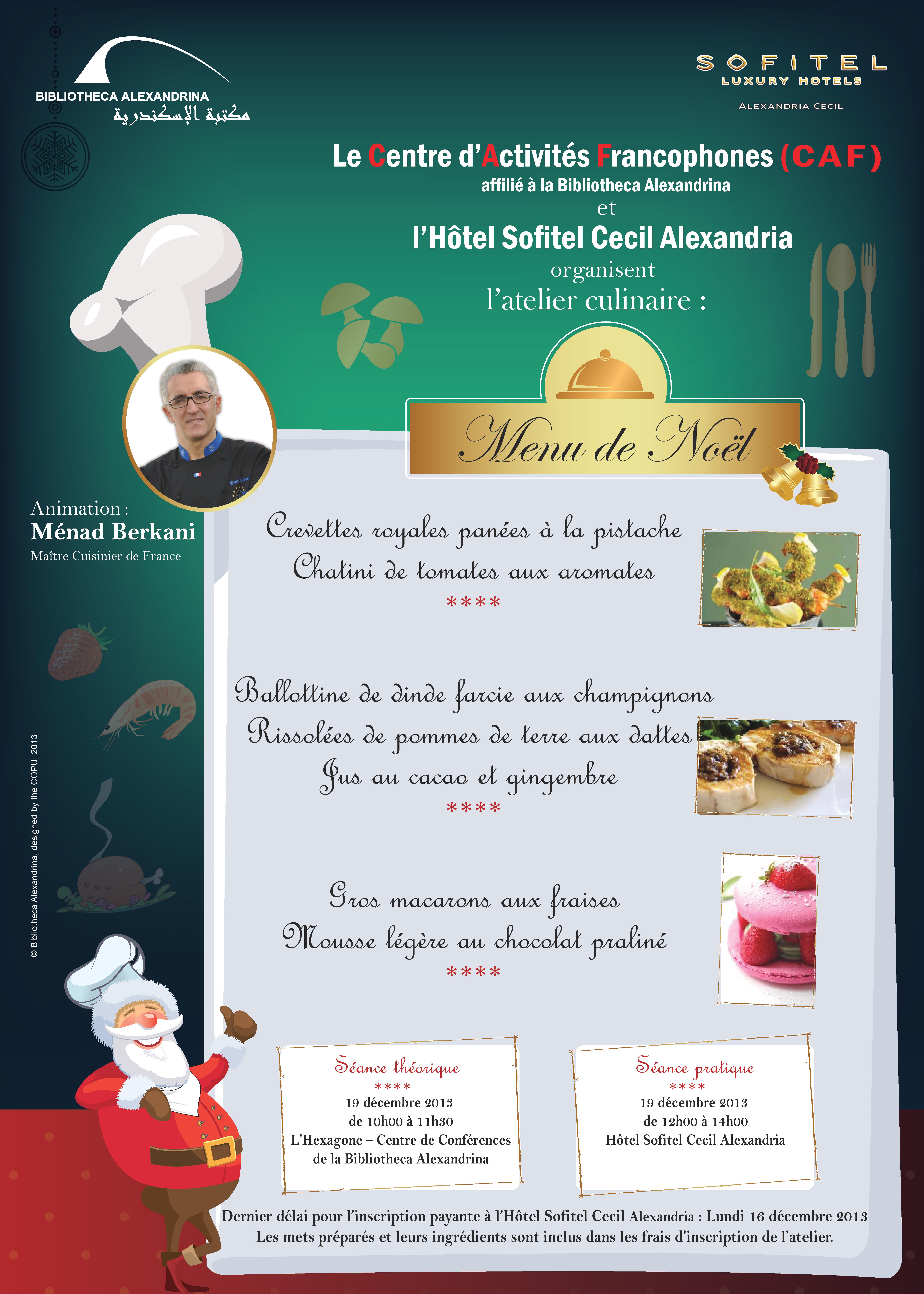 Le Centre d’Activités Francophones (CAF) et l’Hôtel Sofitel Cecil Alexandria organisent l'atelier culinaire : « Menu de Noël »