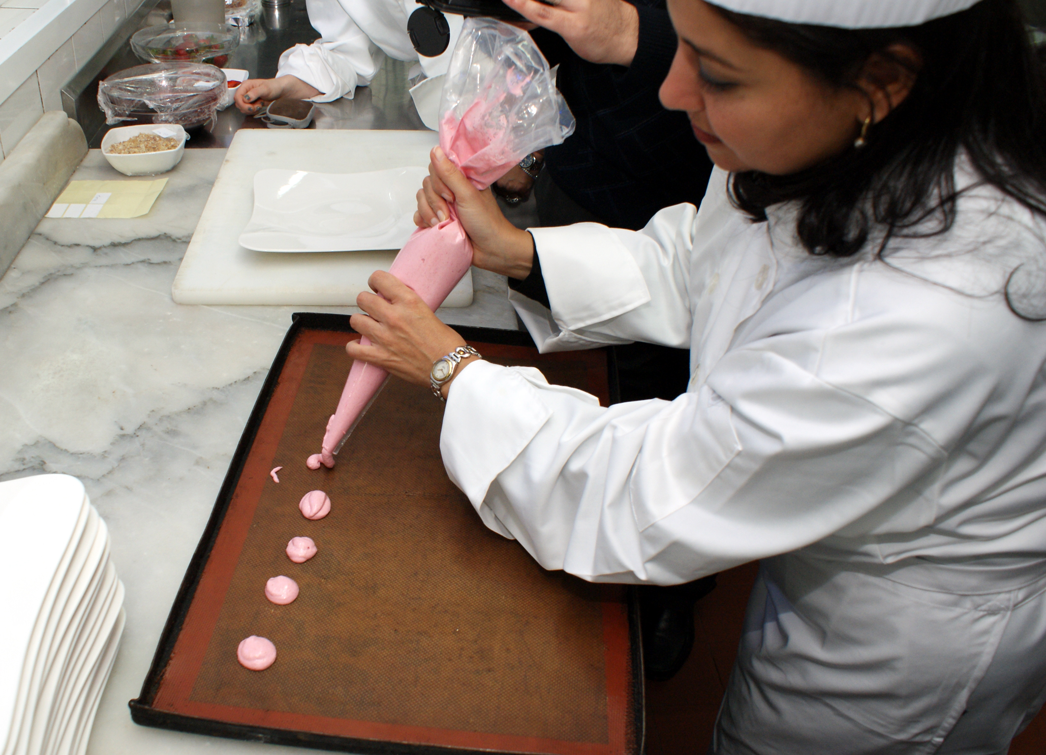 M. le Chef Ménad Berkani à la cuisine de l'Hôtel Sofitel avec les participantes à l'atelier culinaire, pour préparer le menu de Noël