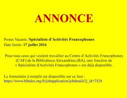 Pour tous ceux qui veulent travailler au CAF de la BA, une fonction de "Spécialiste d'Activités Francophones" est déjà disponible. Le formulaire à remplir est disponible sur ce lien :