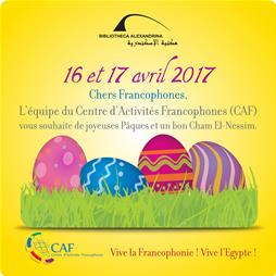 L’équipe du Centre d’Activités Francophones (CAF) vous souhaite de joyeuses Pâques et un bon Cham El-Nessim.