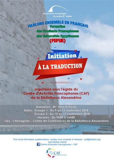 Formation de traduction pour les étudiants francophones des universités égyptiennes (FEFUE) organisée sous l’égide du Centre d’Activités Francophones (CAF) affilié à la Bibliotheca Alexandrina.