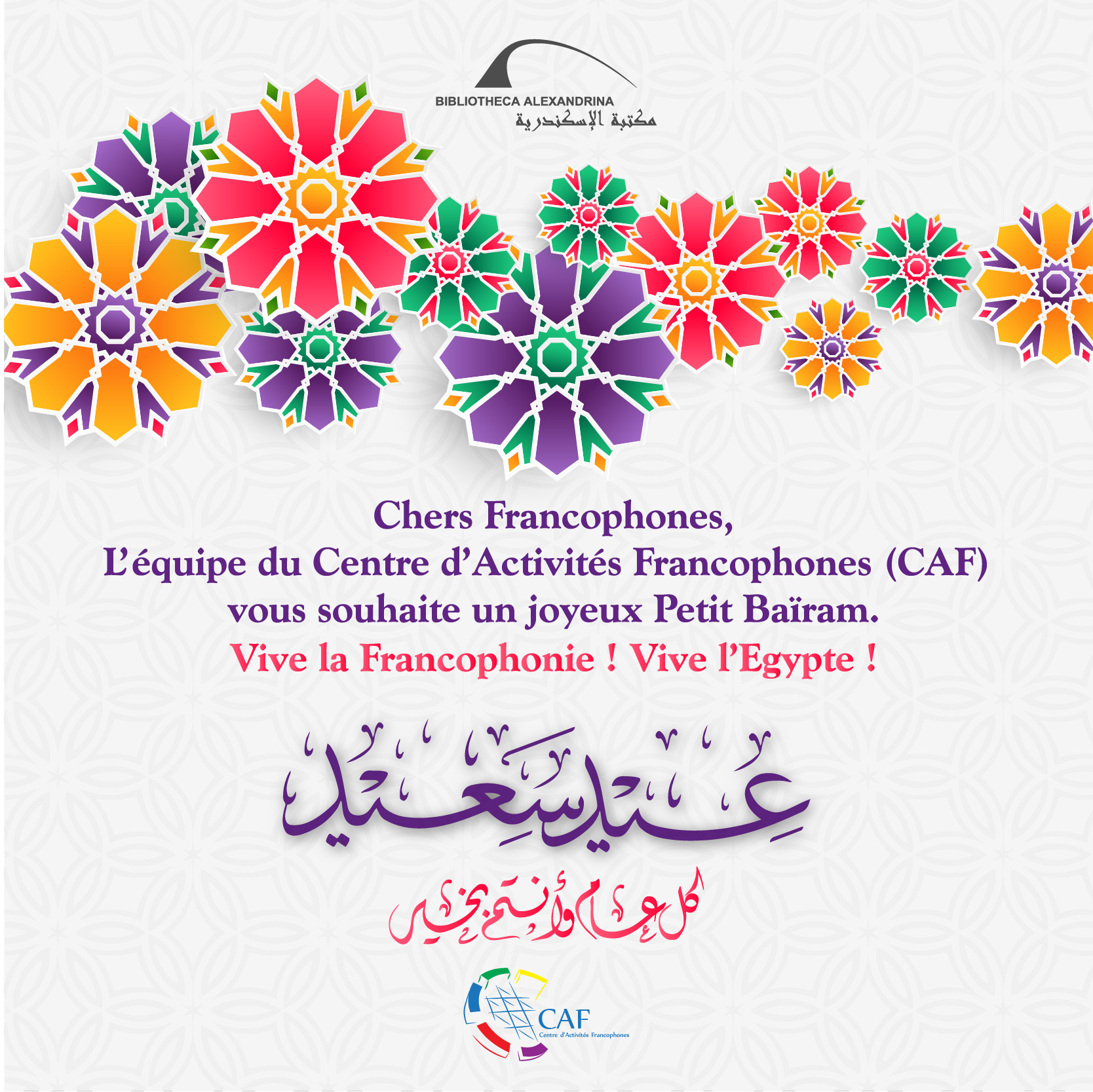 L’équipe du Centre d’Activités Francophones (CAF) vous souhaite un joyeux Petit Baïram.