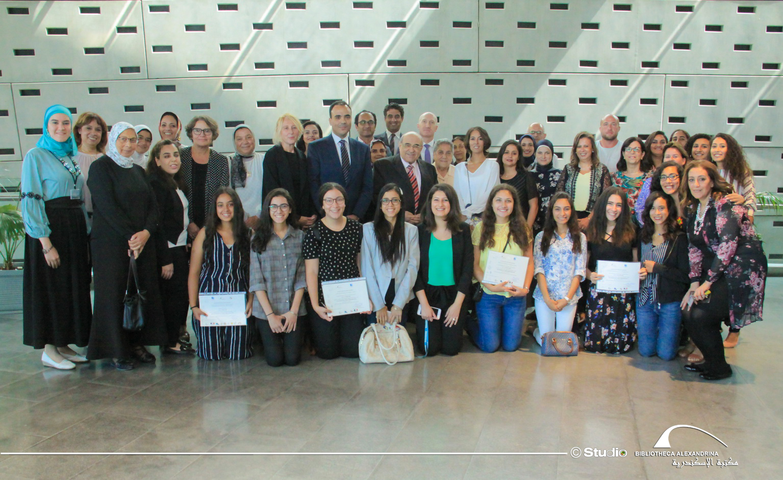 Photo de groupe avec Dr Mostafa El Feki, Directeur de la Bibliotheca Alexandrina