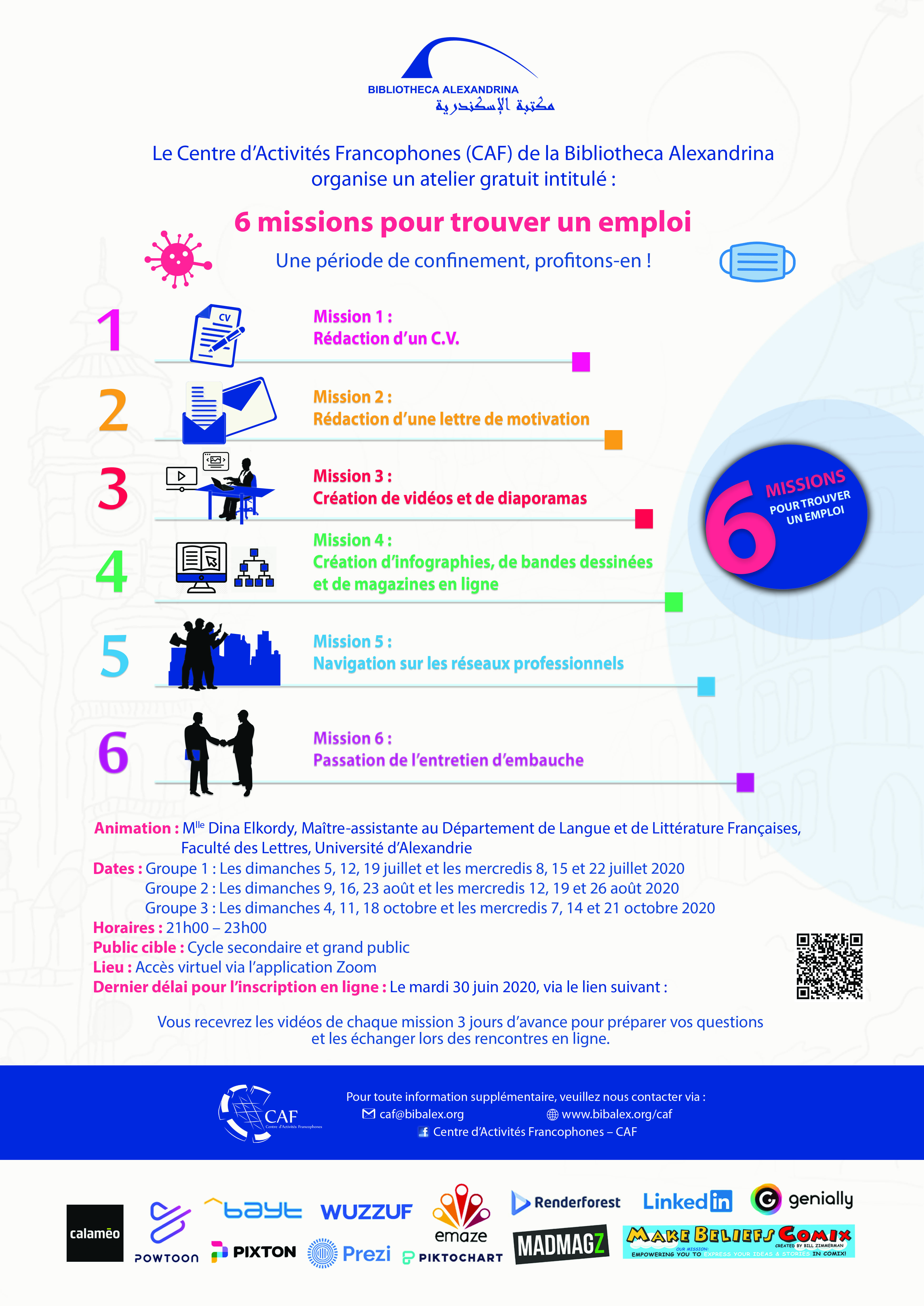 Le Centre d’Activités Francophones (CAF) de la Bibliotheca Alexandrina organise un atelier gratuit intitulé : 6 missions pour trouver un emploi
