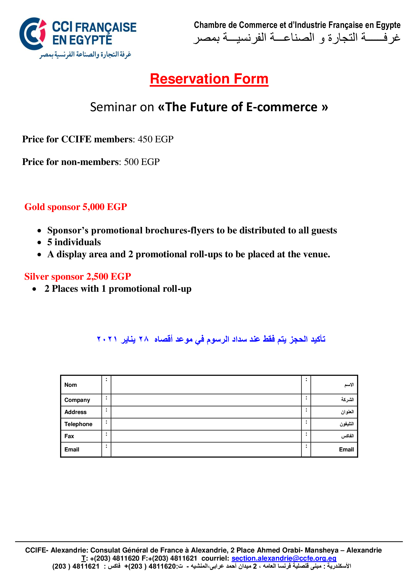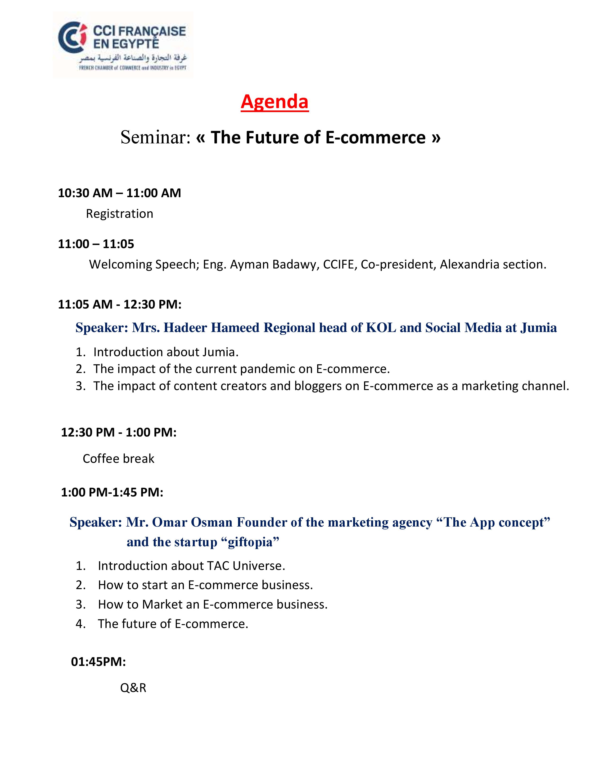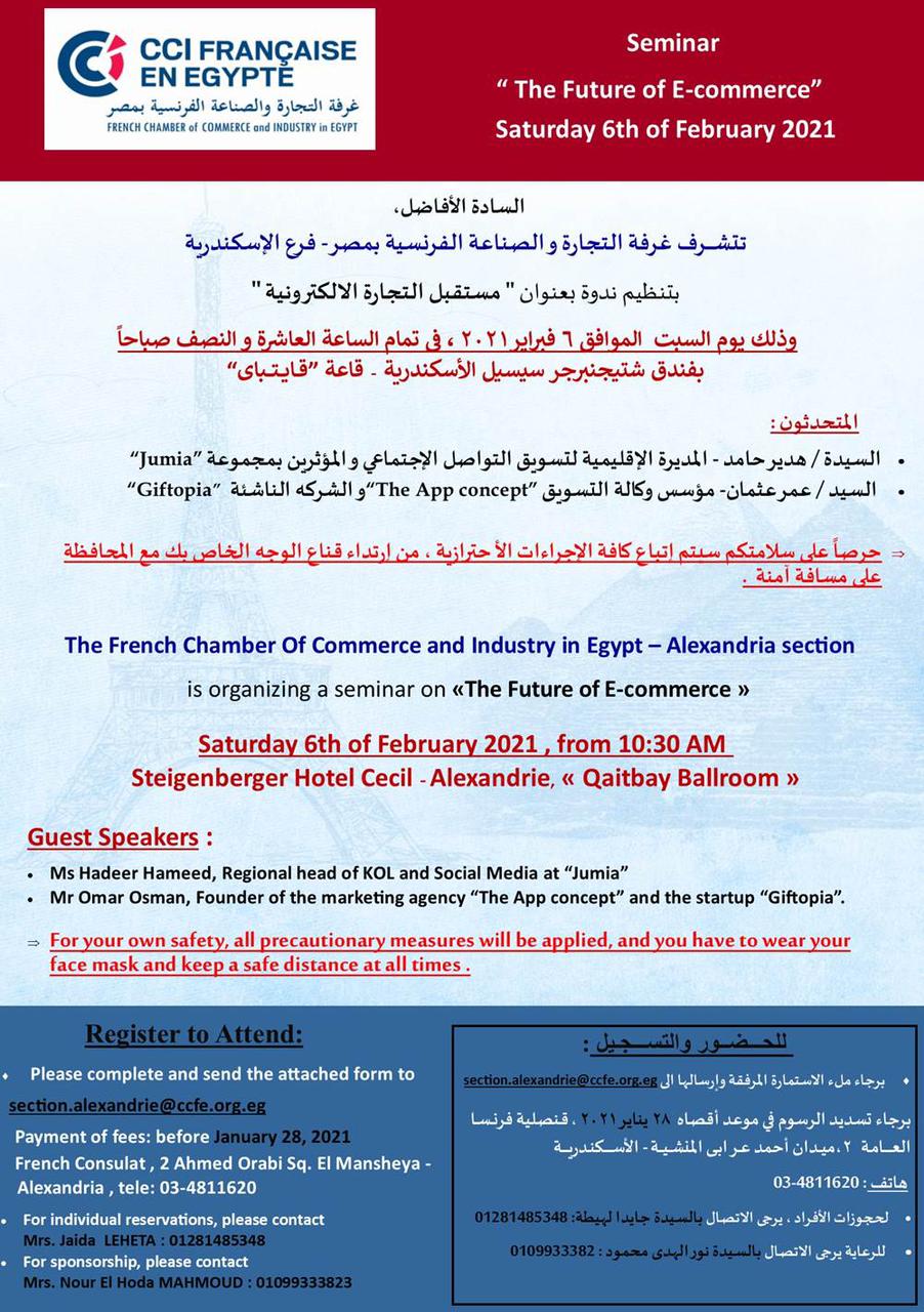 La Chambre de Commerce et d'Industrie Française en Egypte organise une conférence intitulée «The Future of E-commerce » qui aura lieu le samedi 6 février 2021.