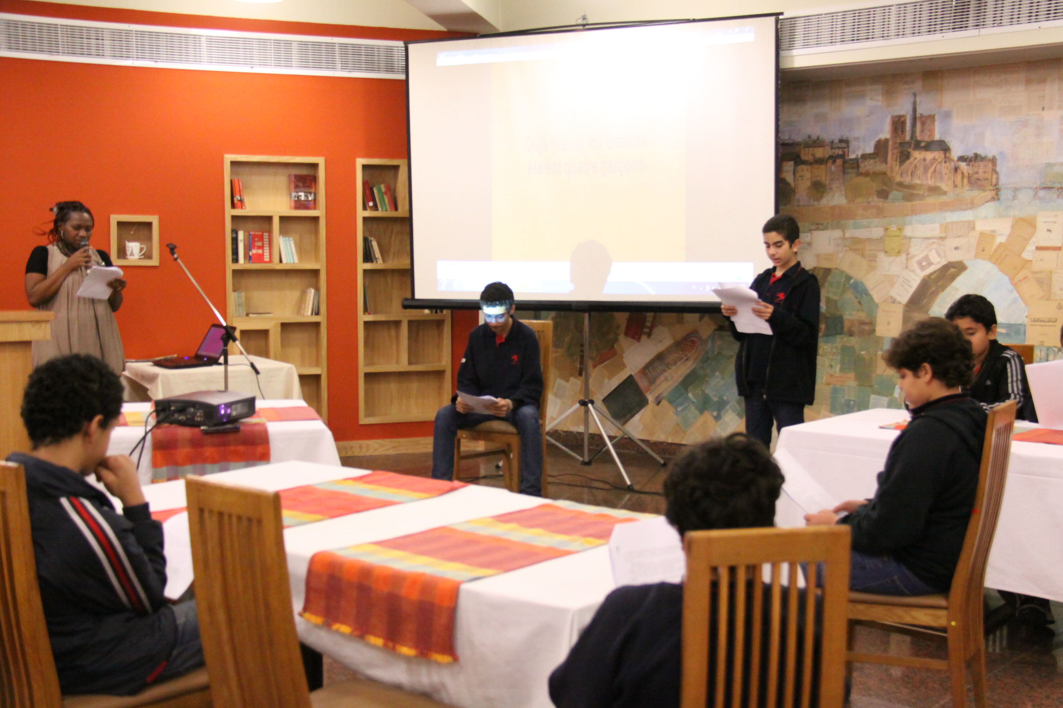 Le Centre d’Activités Francophones (CAF) de la Bibliotheca Alexandrina organise un atelier de lecture avec les élèves du Collège Saint Marc pour les 5 classes de la 1re année du cycle préparatoire. L'atelier est couronné par une visite guidée (en langue française) au sein de la BA.