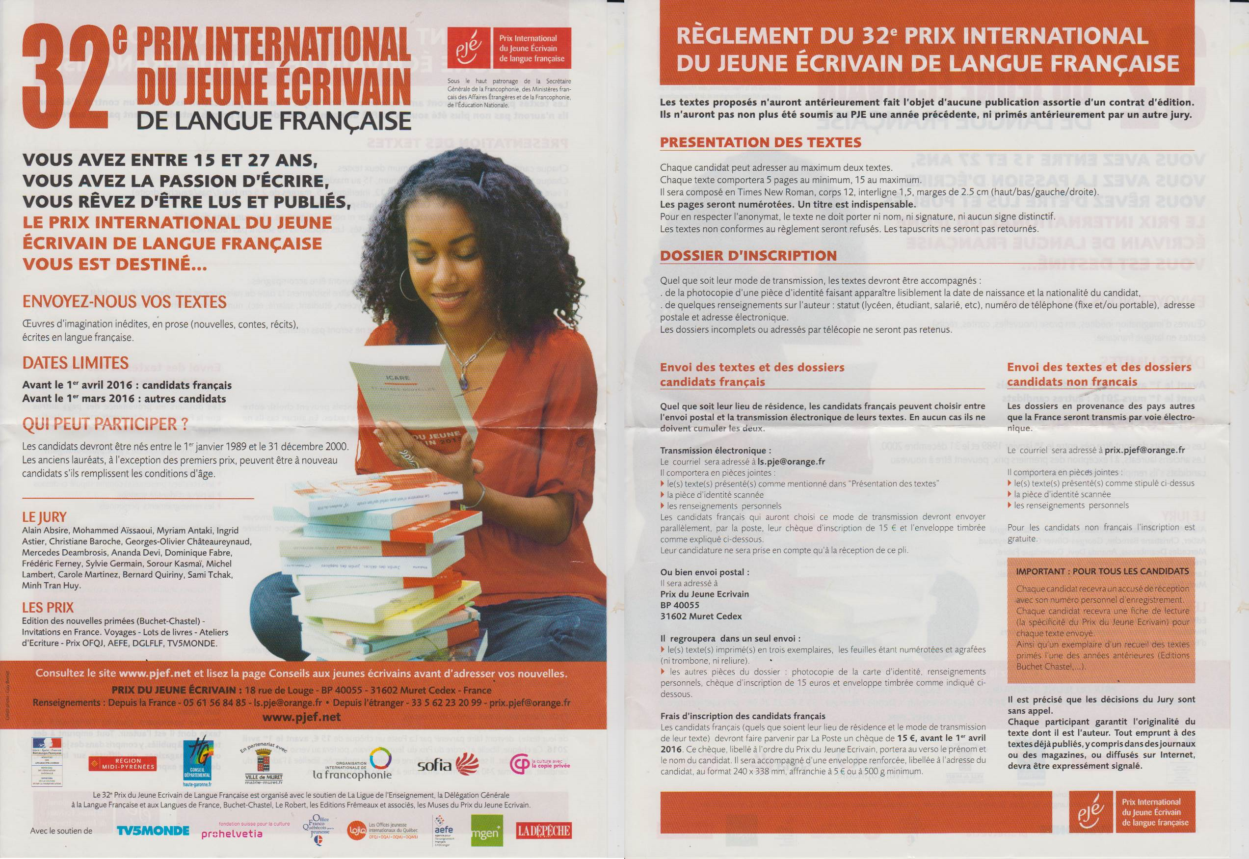 Vous avez entre 15 et 27 ans, vous avez la passion d’écrire, vous rêvez d’être lus et publiés, le Prix International du Jeune Ecrivain de Langue Française vous est destiné…