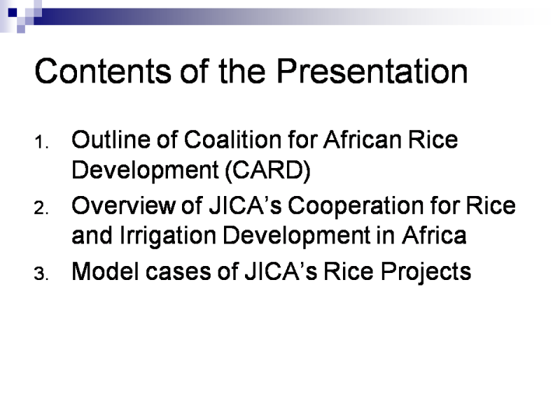 Coalition for African Rice Development (CARD) and JICAs Cooperation for Rice Promotion in Africa