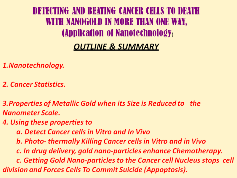 Nanotechnology and NanoMedicine: More than One Way to Beat Cancer Cells to Death with Gold Nano-Particles
