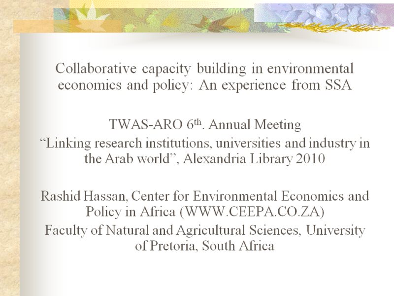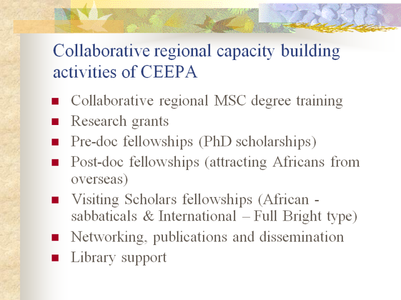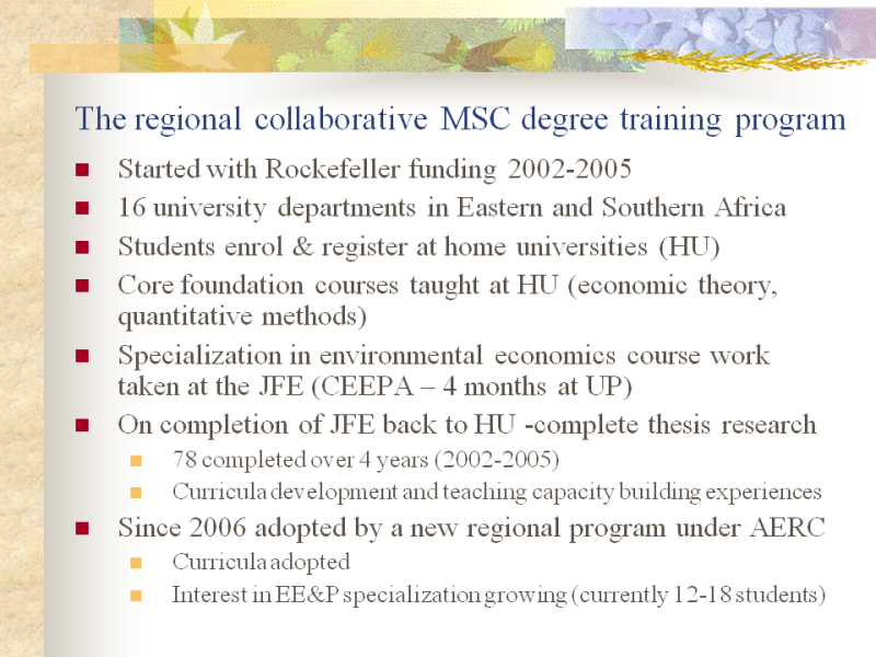 Collaborative capacity building in environmental economics and policy: An experience from SSA