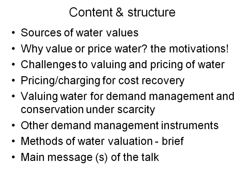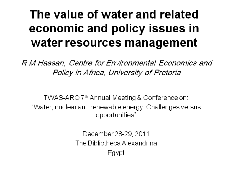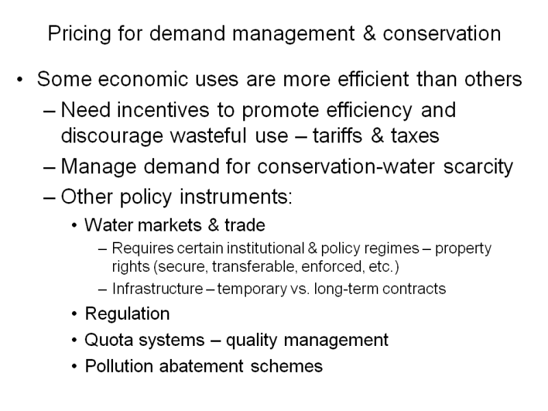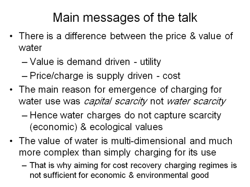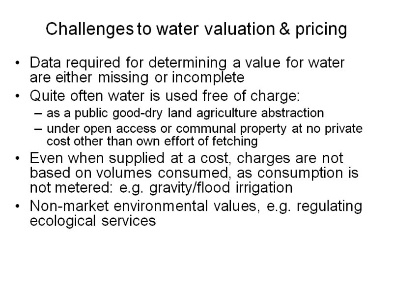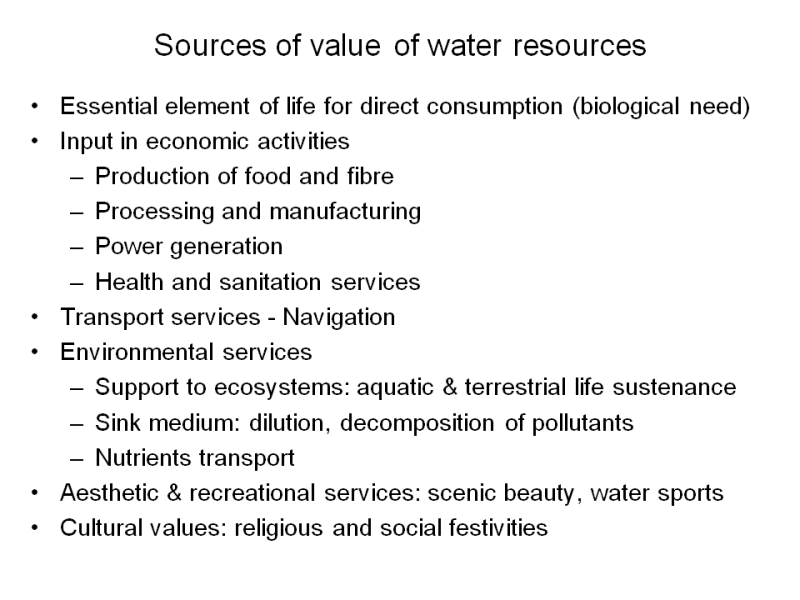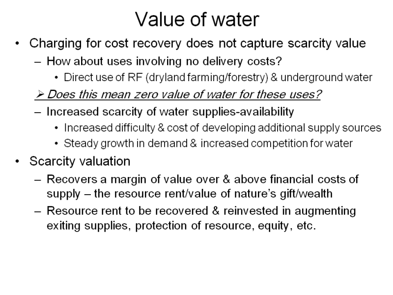 (Water Track) The value of water and related economic and policy issues in water resources management