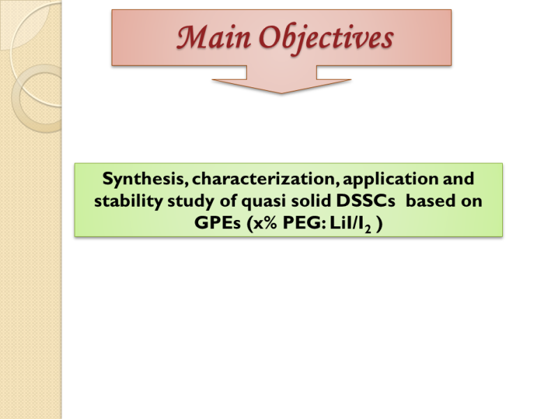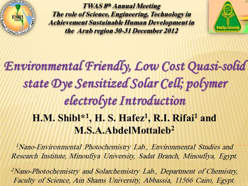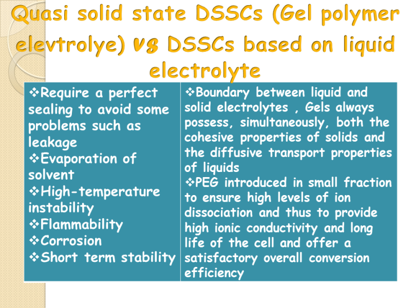 Environmental Friendly, Low Cost Quasi-solid state Dye Sensitized Solar Cell; polymer electrolyte Introduction