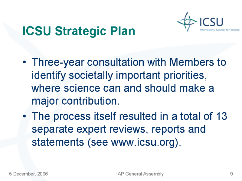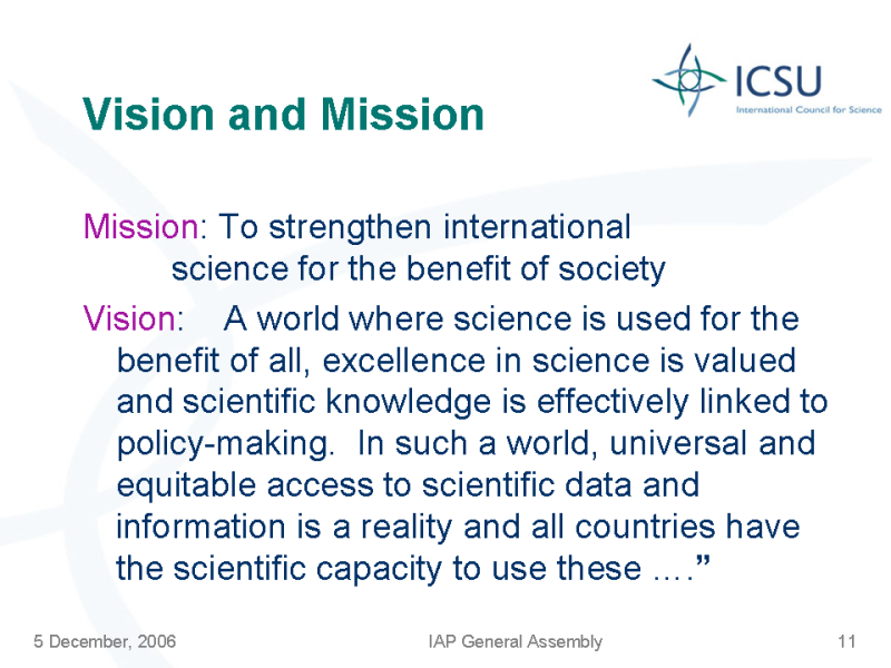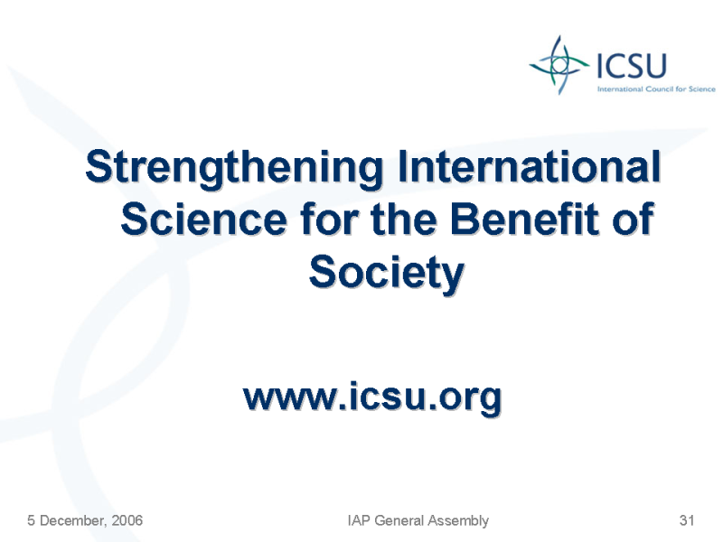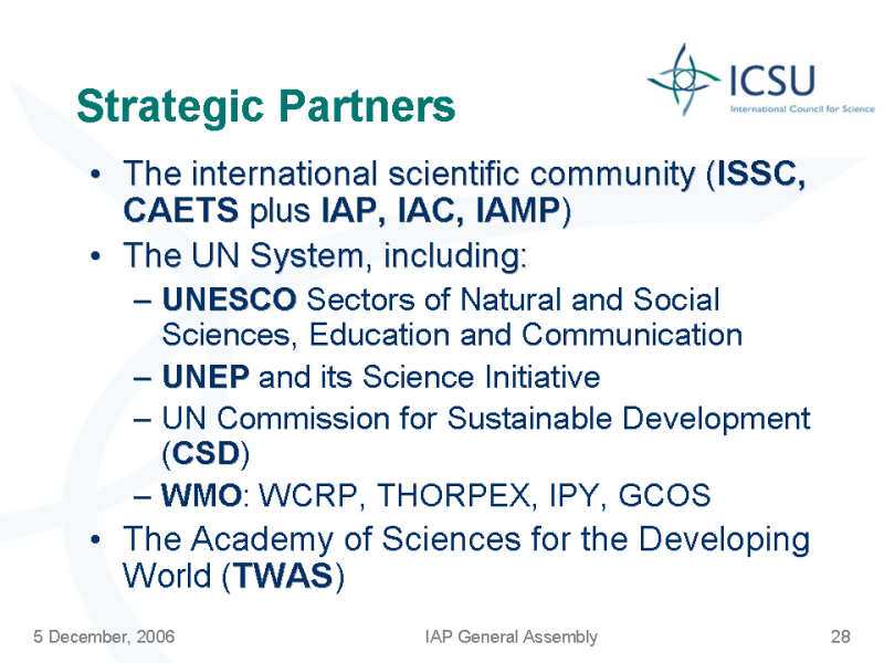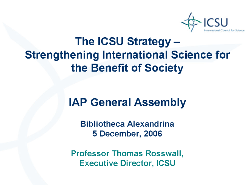 The ICSU Strategy Strengthening International Science for the Benefit of Society