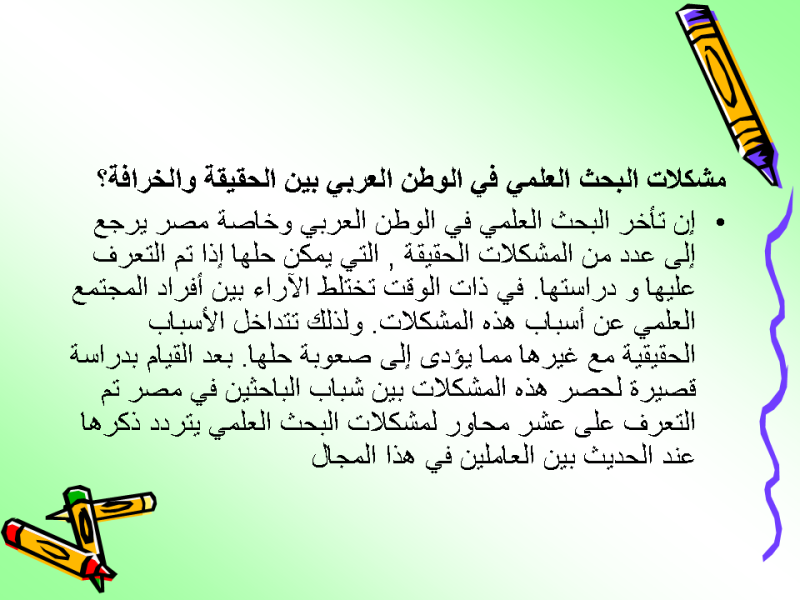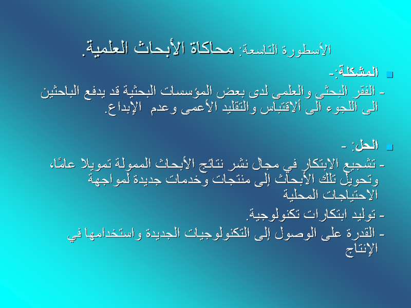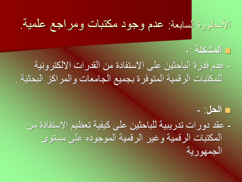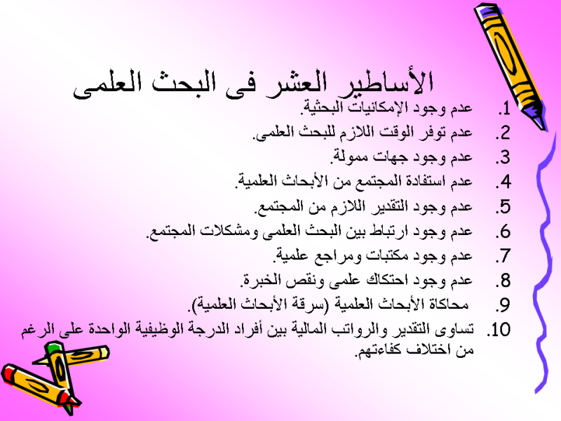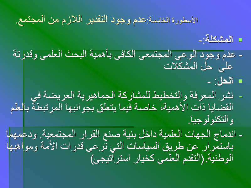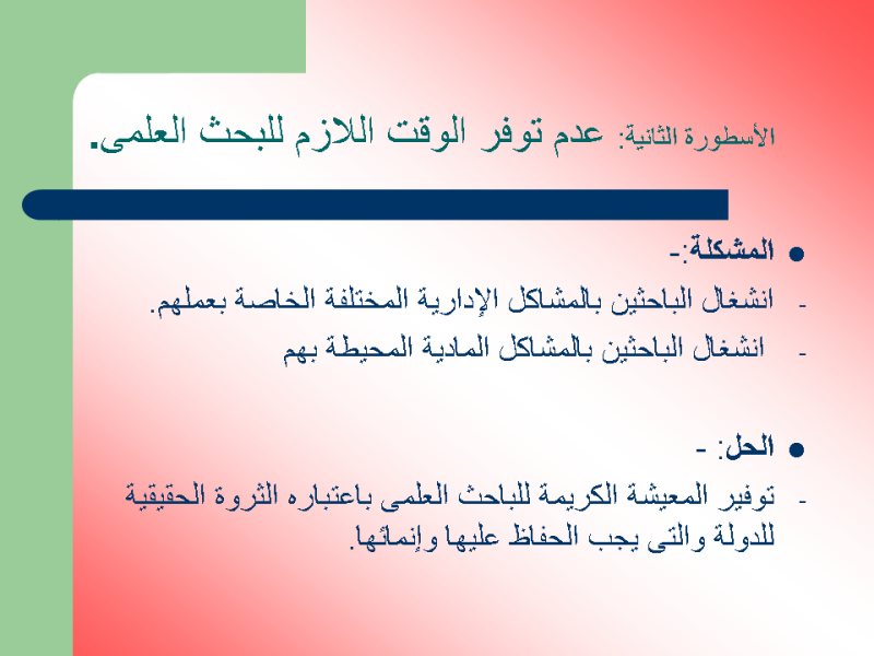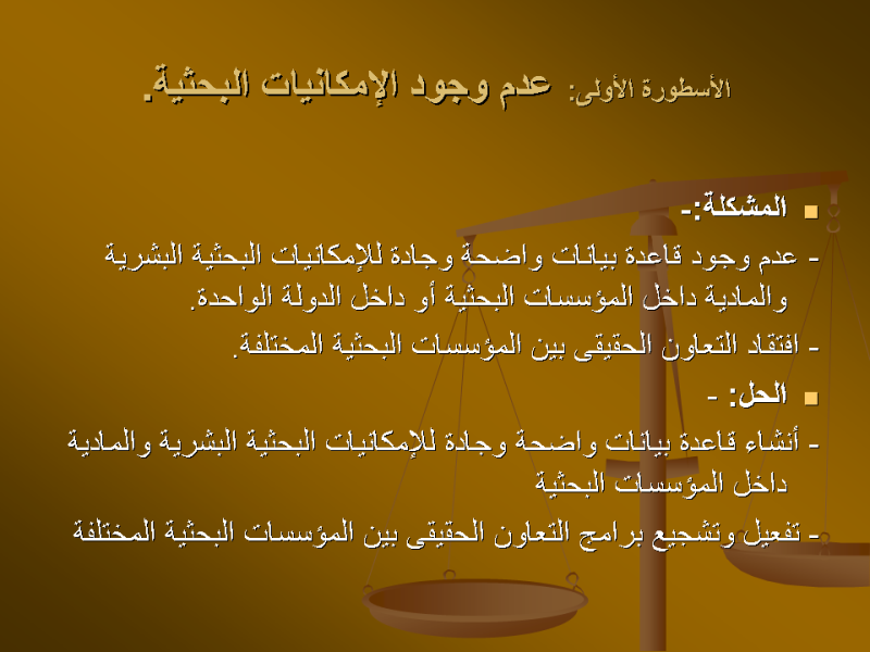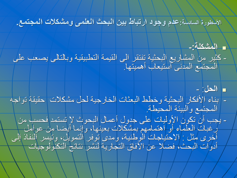 The Scientific Research Problems in the Arab World: Myths and Reality