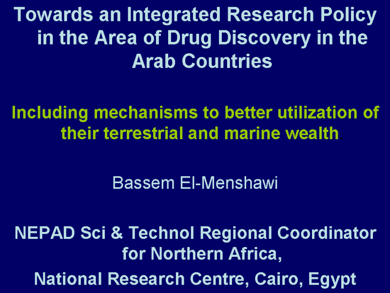 Towards an Integrated Research Policy in the Area of Drug Discovery in the Arab Countries