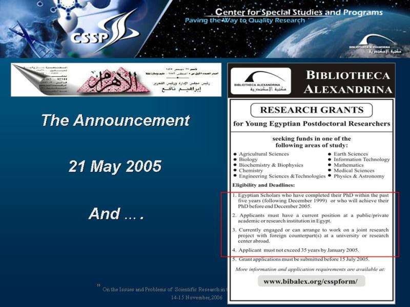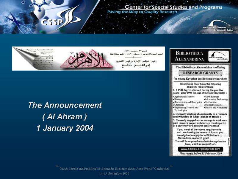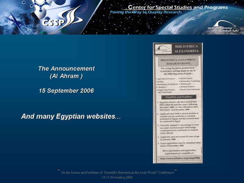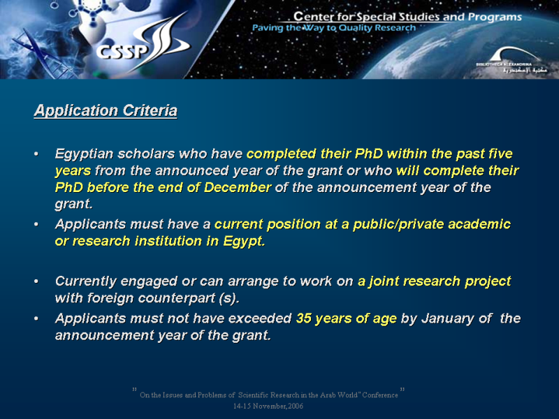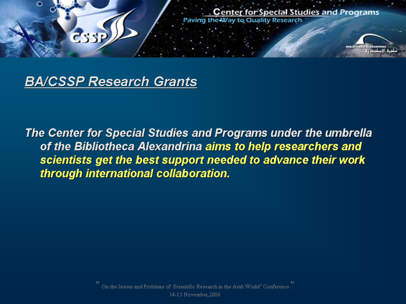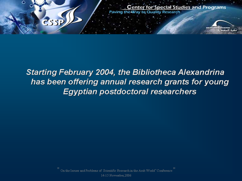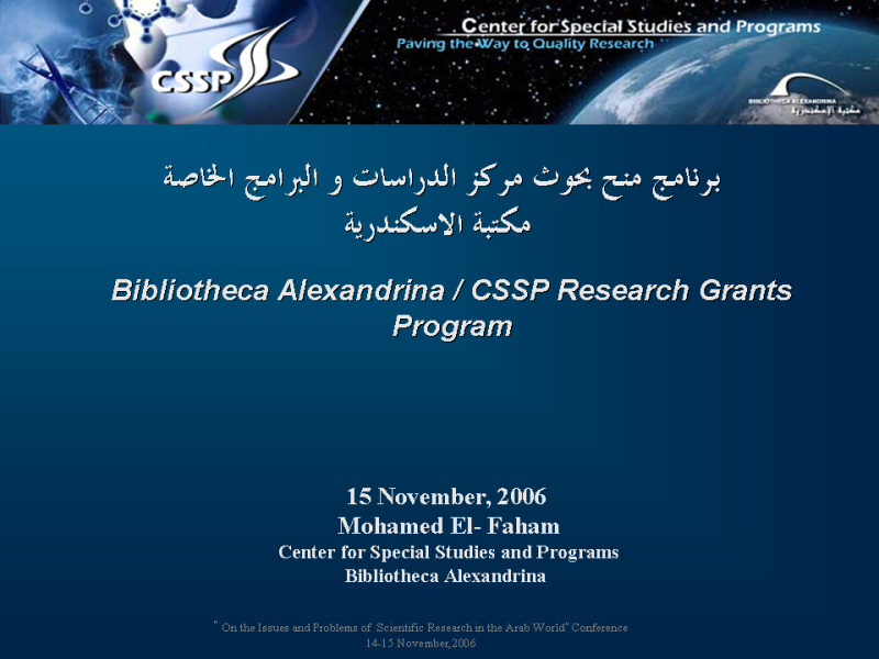 Bibliotheca Alexandrina / CSSP Research Grants Program