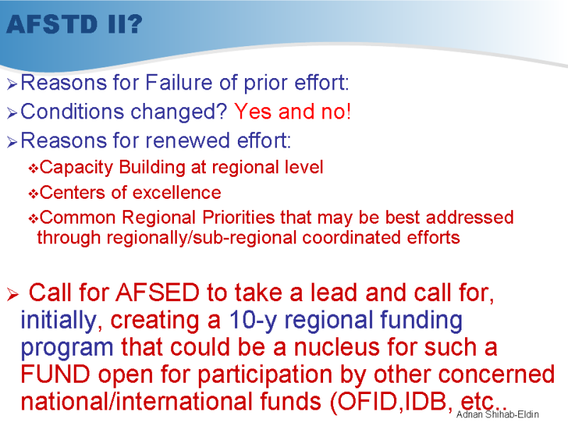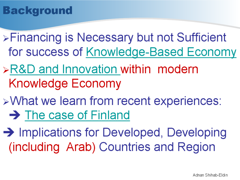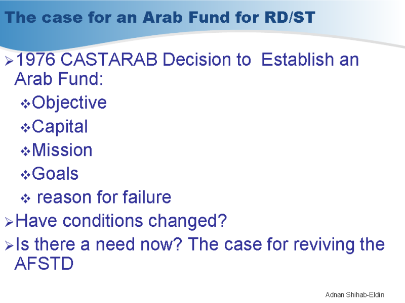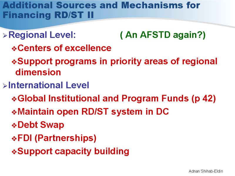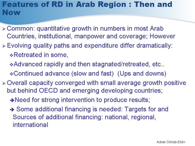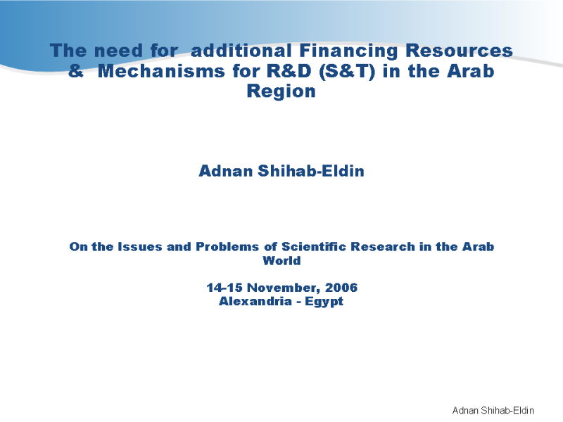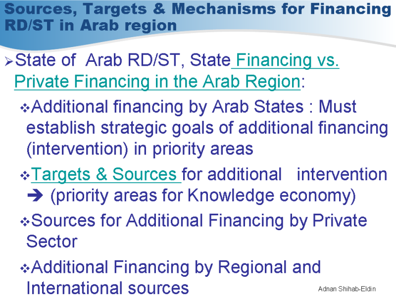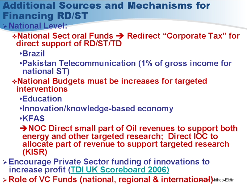 The Need for Additional Financing Resources & Mechanisms for R&D (S&T) in the Arab Region