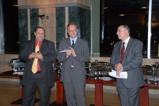 During the Welcome Speech. From left: Prof. Dr. Maged El-Sherbiny, Assistant Minister for Scientific Research; Dr. Christian Huelshoerster, Director DAAD Cairo Office; and Prof. Yehia Halim Zaki, Head of Academic and Cultural Sector, Bibliotheca Alexandrina