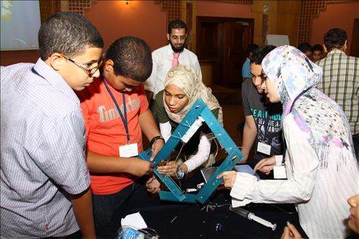 Mr. Ayman Khamis, Electronic Instructor TECHNO Future, discussing Robotics and Innovation with the participants during session 2