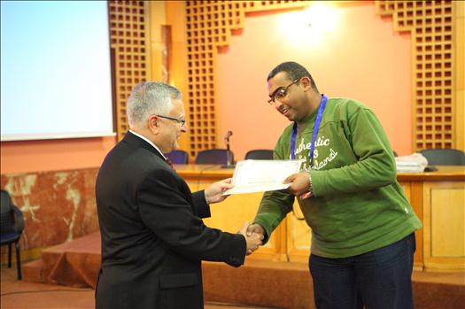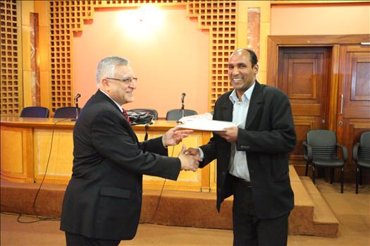Prof. Mohamed El-Sharkawi, Workshop trainer, along with Mr. Mohamed Badawi, Workshop participant, during the certificates distribution ceremony