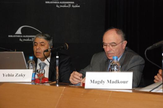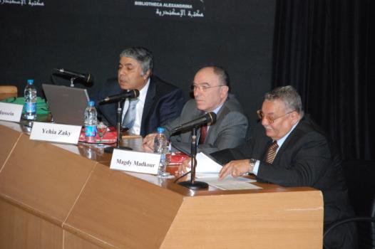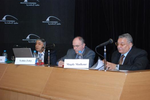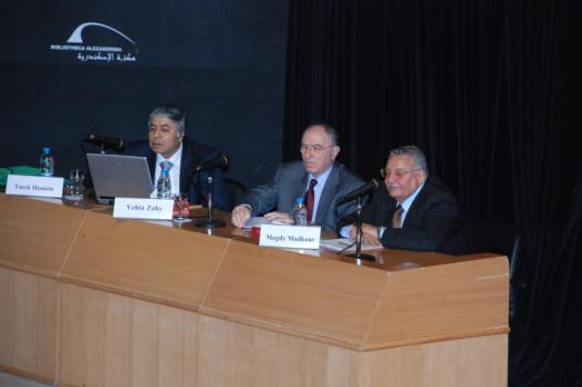 From right: Dr. Magdy Madkour, Dr. Yehia Halim and Dr. Tarek Hussien during the opening session.