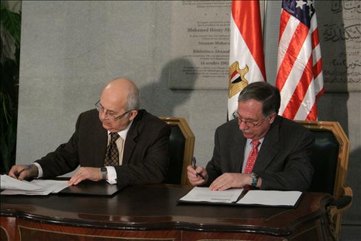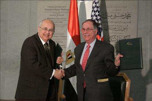 Dr. Ismail Serageldin and Dr. James Edwards. The Sign of the MOU between the Encyclopedia of life and the BA
