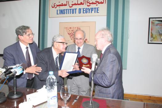 Prof. Mahmoud Hafez receives an award from Prof. Yves Quere