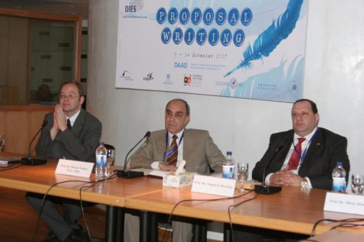 From left: Dr. Christoph Hlshrster, Director of the DAAD office Cairo, Prof. Hassan Nadeer Kayr Allah, President of Alexandria University and Prof. Dr. Maged El-Sherbiny, Assistant Minister for Scientific Research