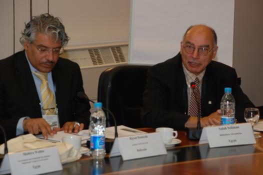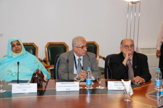 From left Dr. Riyad Hamzah, Arabian Gulf University and Dr. Salah Soliman, Special Advisor, Bibliotheca Alexandrina during Dr. Soliman welcome speech in the opening in the Future of Sustainability Forum.
