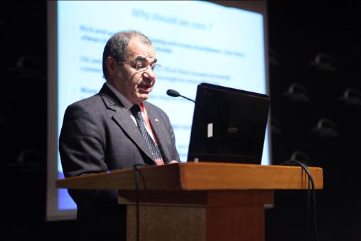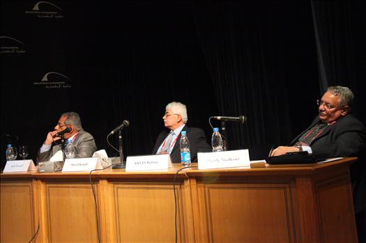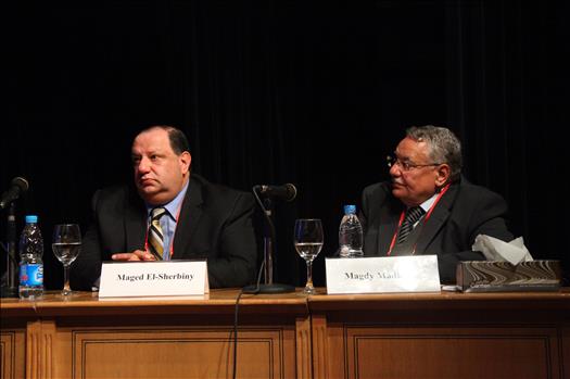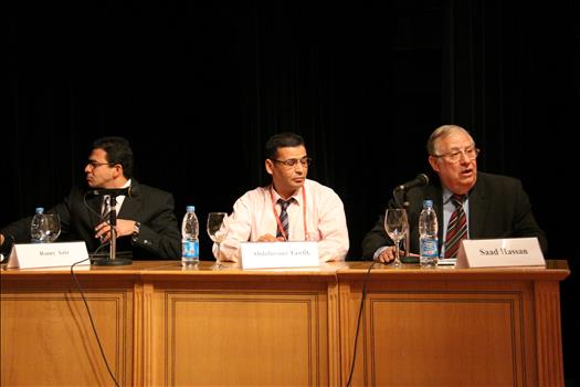 From the left: Prof. Ramy Aziz, Assistant Professor, Department of Microbiology and Immunology, Faculty of Pharmacy, Cairo University, Egypt - Prof. Abdelnaser Tawfik, ECTP Founder Director and Professor of Physics at MTI, Egypt and Prof. Saad Hassan, Professor, Department of Chemistry, Faculty of S
