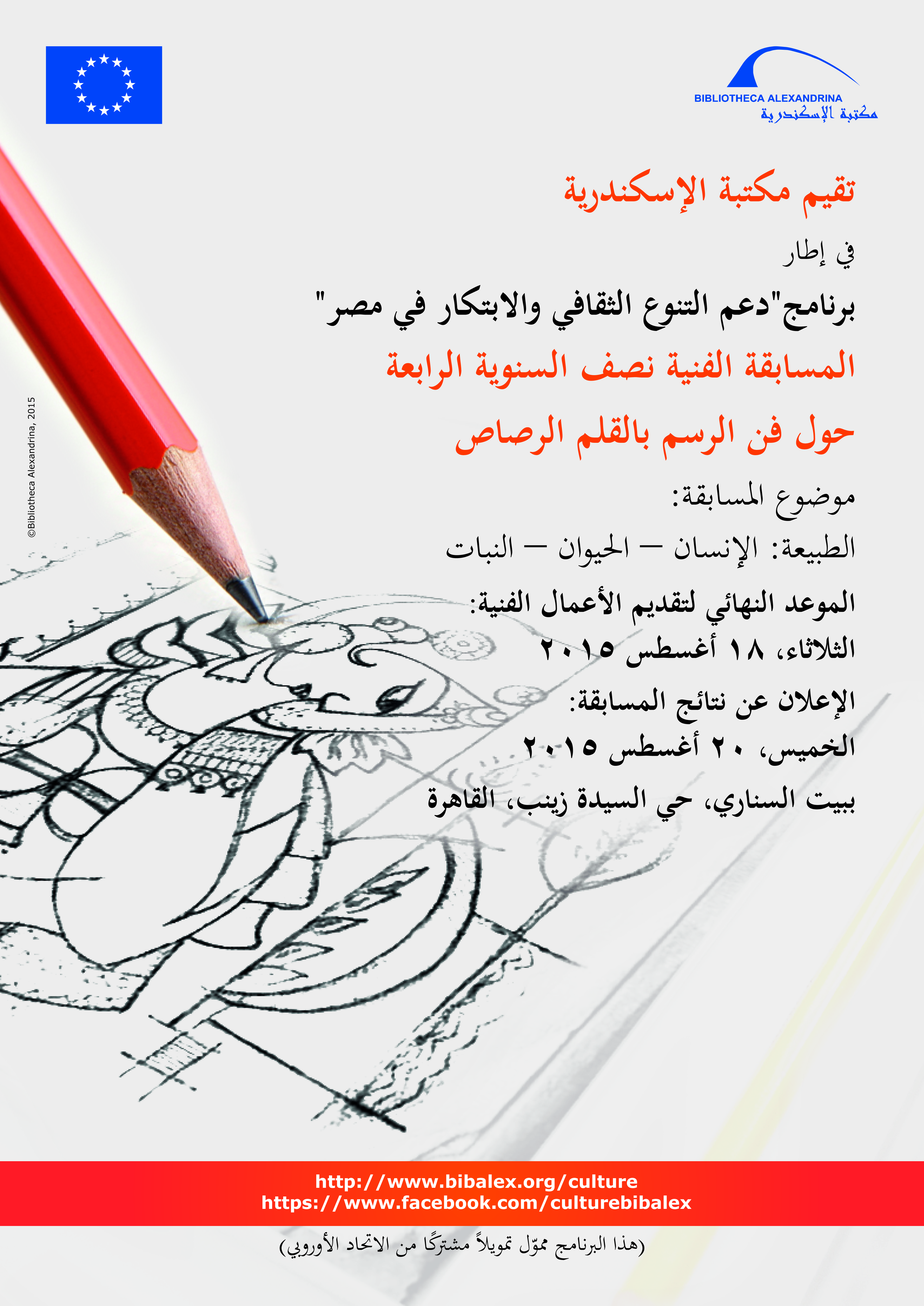 واتخذت المسابقة الفنية الرابعة "الرسم بالقلم الرصاص" عنوانًا لها، حيث دعت مكتبة الإسكندرية الموهوبين من سن 12- 16 ومن سن 18 – 34 للاشتراك في المسابقة، محددةً "الطبيعة: الانسان – الحيوان – النبات" كموضوع رئيسيي للأعمال الفنية. ويستكمل بيت السناري اليوم فعاليات المسابقة حيث يتم عرض الأعمال الفنية وتوزيع الجوائز على الفائزين.